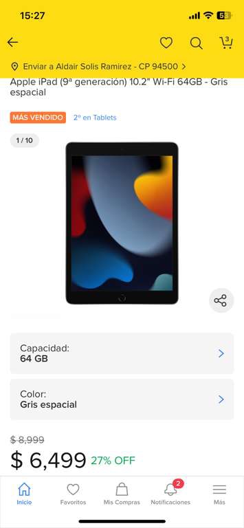 Mercado Libre Ir a la ofertaEn mercado libre usando el cupón MASTER10 les descuentan $500 dando un total de $5,999.00, cómo dato extra entra a 18 MSI con banamex y le quedan aproximadamente 4 hrs de vida a la publicación.
