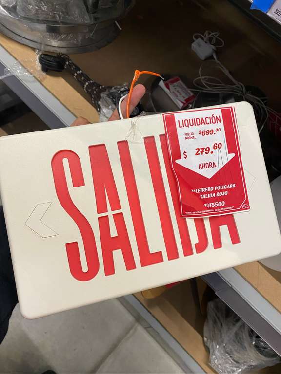 Letrero luminoso "Salida" en liquidación SODIMAC Veracruz