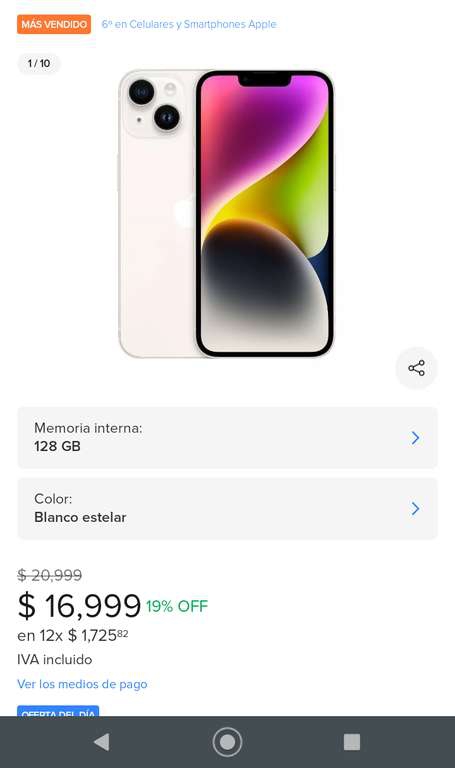 Mercado Libre iPhone 14 (128 GB) - Blanco Estelar