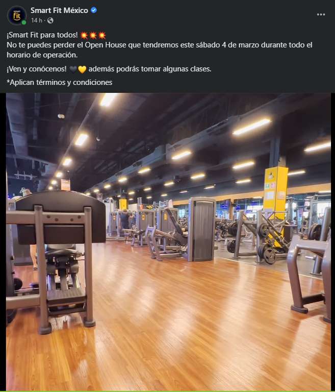 SmartFitPor el Día Mundial de la Obesidad, el 4 de Marzo (mañana) Smart Fit hará Open House todo el día gratis para el público en general, no esta en su página oficial pero lo han anunciado en redes y en sus unidades. Aplican términos y condiciones, ser mayor de edad, contar con INE vigente y registrase antes de ingresar.