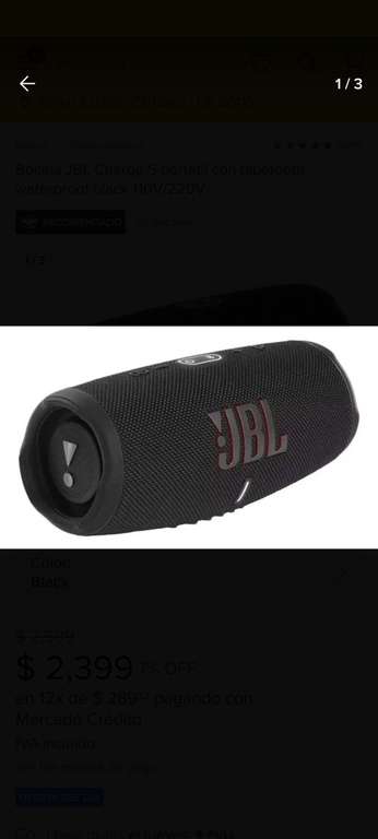 Parlante JBL Charge 5 de Mercado Libre ($2280 con crédito de mercado)