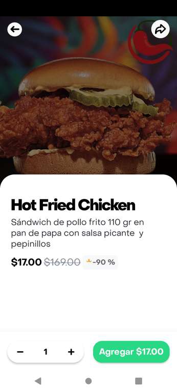 RappiEn rappi las hamburguesas hungry mob de pollo al 90% de descuento, solo para usuarios prime , compradas en cdmx centro.