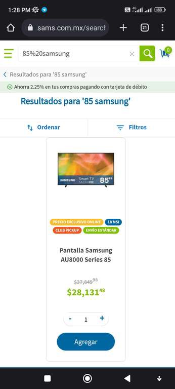 Sam's Club TV 85AU8000 SAMSUNG. El precio me parece muy bueno
