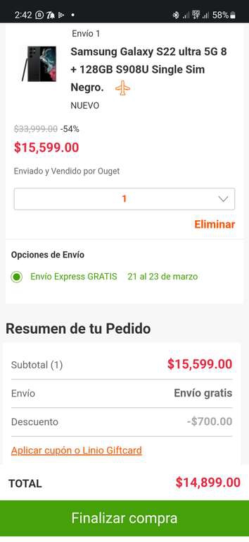 Precio pagando con PayPal