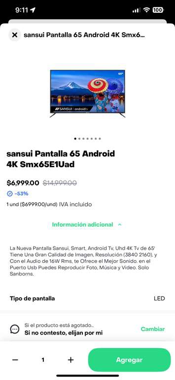 Rappi Ir a la ofertaPantalla Sansui, Smart, Android Tv, Uhd 4K Tv de 65' Tiene Una Gran Calidad de Imagen, Resolución (3840 2160), y Con el Audio de 16W Rms, te Ofrece el Mejor Sonido. en el Puerto Usb Puedes Reproducir Foto, Música y Video.