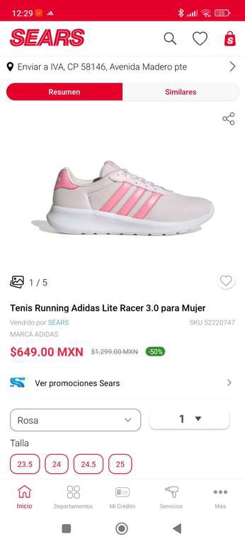 Sears Ir a la ofertaTenis Runinng Adidas Lite Racer 3.0 para dama del #23.5 al 25 disponibles en color rosa todo el Adidas viene más amplio medió número más grande para que lo consideren por si les interesa.
