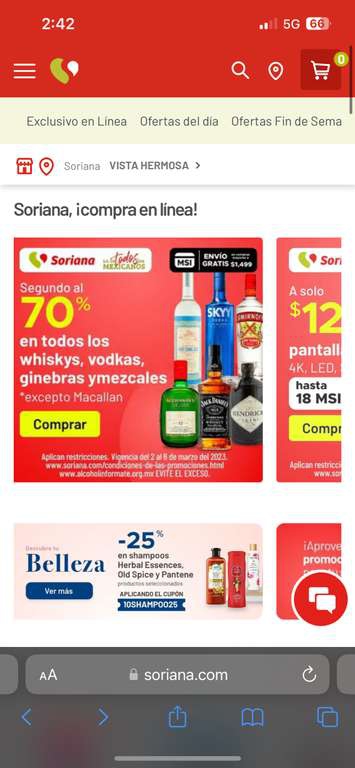 Soriana: Segundo al 70% en Whiskys, vodkas, ginebras y mezcales