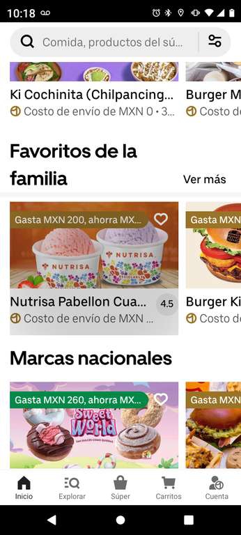 Uber EatsEn uber eats miembros one hay varios descuentos como nutrisa, cielito querido, churros el moro de gasta $200 ahorra $100.