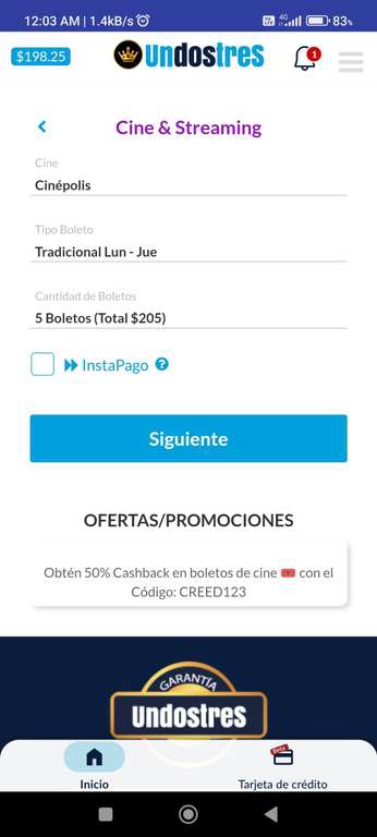 UnDosTres: 50% cashback en boletos de CINE (topado a $50)
