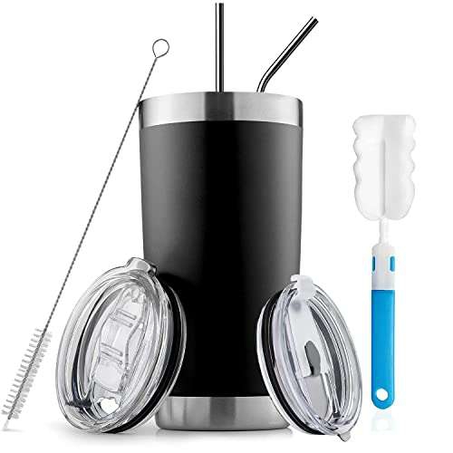 Amazon Ir a la oferta- 【Alta relación calidad-precio】 el producto incluye vasos de 600 ml(20 Oz), 2 pajitas de acero inoxidable, lo que hace más conveniente beber bebidas,2-Cepillo de Limpieza, 2 tapas deslizantes a prueba de derrames, el revestimiento de superficie mate con sensación de escarcha, mejora la textura y la durabilidad. impide que el vaso se caliente, enfríe o sude, proporcionándote un agarre firme y seguro. También cuenta con una tapa hermética que evita los derrames cuando vas en movimiento.