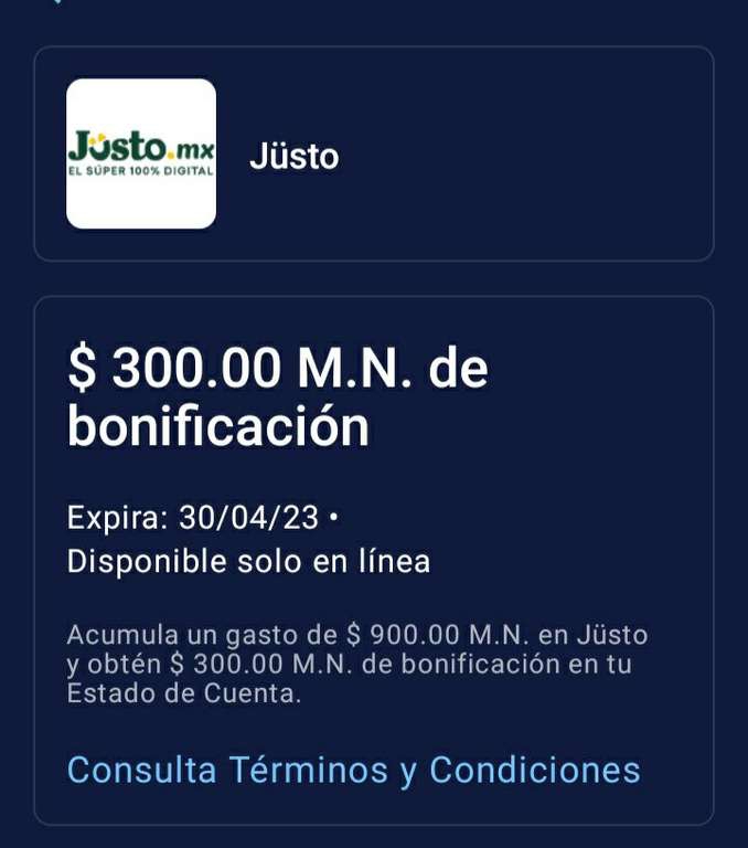 Bonificación de $300 al llegar a un gasto acumulado de $900