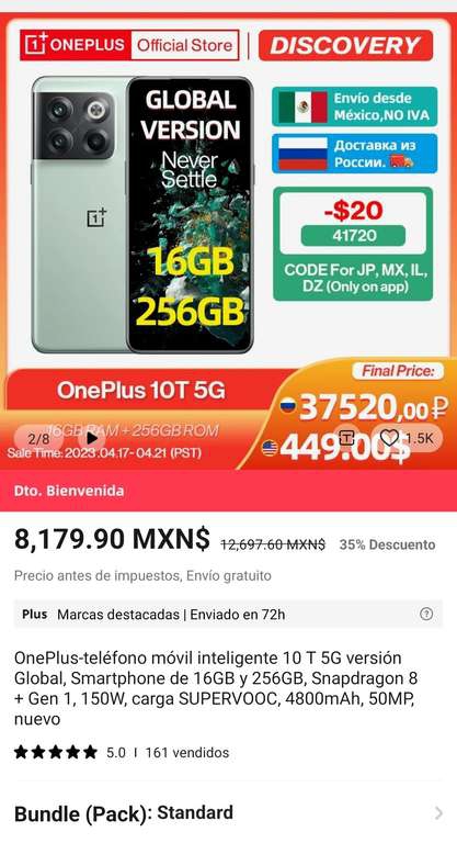AliExpress Ir a la ofertateléfono móvil inteligente OnePlus 10 T 5G versión Global, Smartphone de 16GB y 256GB, Snapdragon 8 + Gen 1, 150W, carga SUPERVOOC 4800mAh, 50MP, nuevo