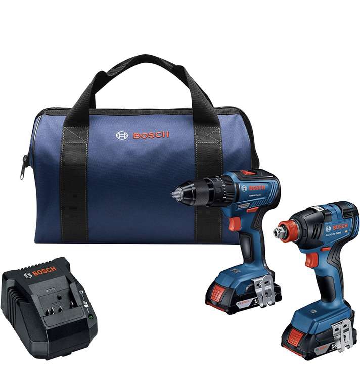 Amazon Ir a la ofertaBosch GXL18V-240B22 18V 2-Tool Combo Kit with 1/2 In. Hammer Drill/Driver, Freak 1/4 In. and 1/2 In. Two-In-One Bit/Socket Impact Driver and (2) 2.0 Ah SlimPack Batteries