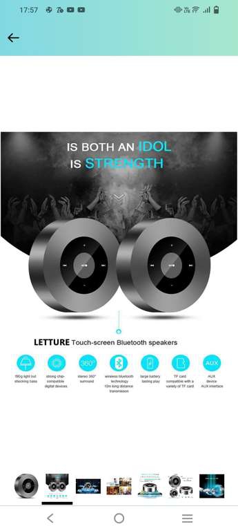 Amazon Ir a la ofertaLETTURE Bocina Bluetooth, Bocina portatil Sonido Envolvente estéreo de 360 Grados Mini bocina inalambrica LED Touch