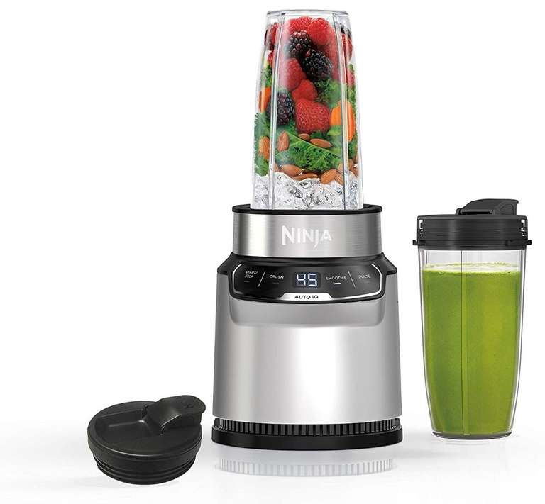 Amazon Ir a la ofertaNinja BN401 Nutri Pro - Batidora personal compacta, tecnología Auto-iQ, 1100 vatios máximos, para bebidas congeladas, batidos, salsas y más, con (2) tazas para llevar y tapas de boquilla, plata nube