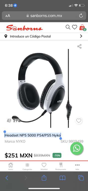 Auriculares Sanborns NP5 5000 PS4/PS5 Nyko 70% de descuento