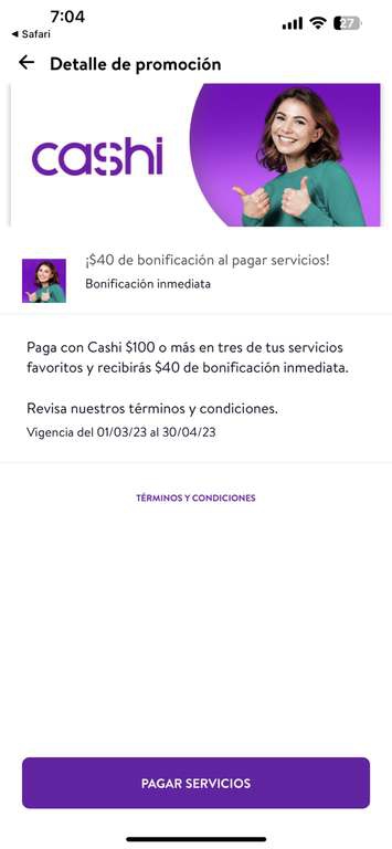 Cashi: Bonificación de $40 al pagar 3 servicios