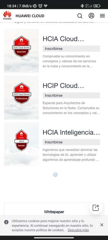 Cursos de preparación ye certificaciones gratis en las tecnologías de nube de huawei