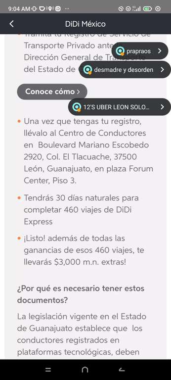 DiDi Ir a la ofertaMe llegó la notificación desde la app de conductor en didi, haciendo 460 viajes en 30 días te dan 3000 pesos extras. Con la condición de actualizar la documentación que solicita el estado de Guanajuato de acuerdo a la ley de movilidad vigente.
