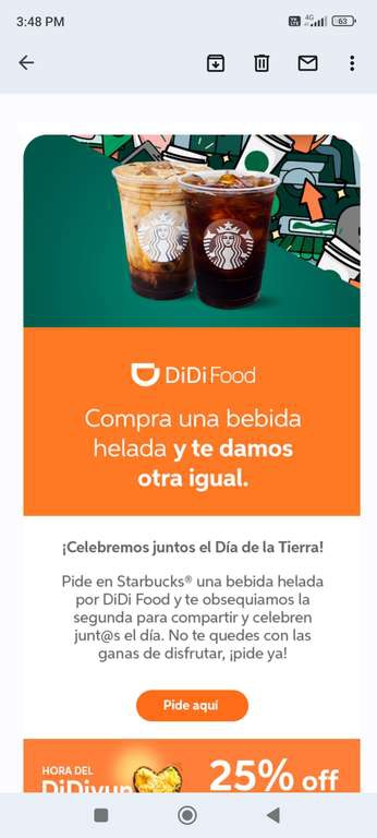 Didi Food y Starbucks: compra una bebida fría y te obsequia otra