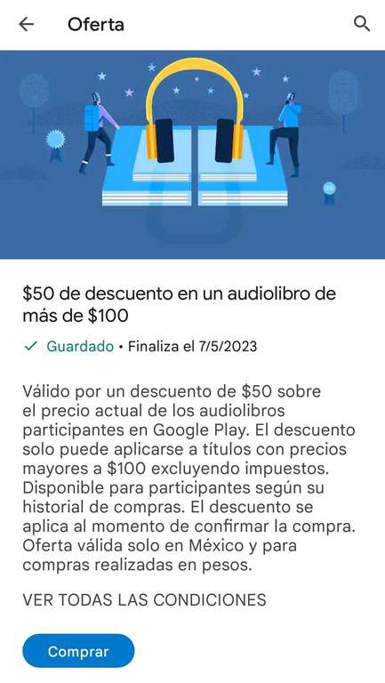 Google Play $ 50 de descuento en audiolibros de $ 100 o más