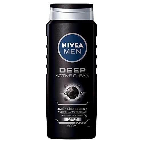 Amazon Ir a la ofertaNIVEA MEN Jabón Líquido Corporal 3 en 1 para Cuerpo, Rostro y Cabello, Active Clean Body Wash Antibacterial, 500 ml