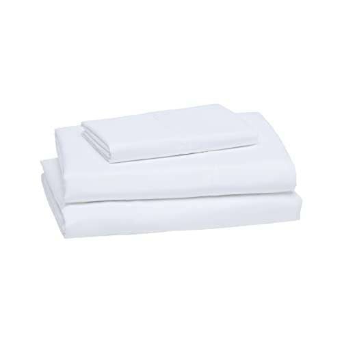 Amazon Ir a la ofertaJuego de sábanas de microfibra ligera y súper suave de fácil cuidado con bolsillos de 14 pulgadas de profundidad, individual, blanco brillante.