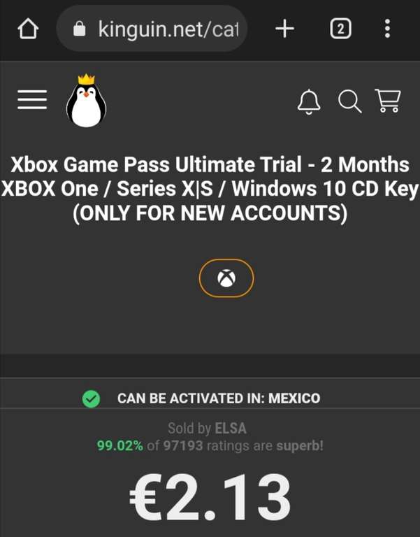 Kinguin Ir a la oferta en Google y le dan clic en el primer enlace, los redirigirá a la página oficial de Microsoft y pegan su código comprado