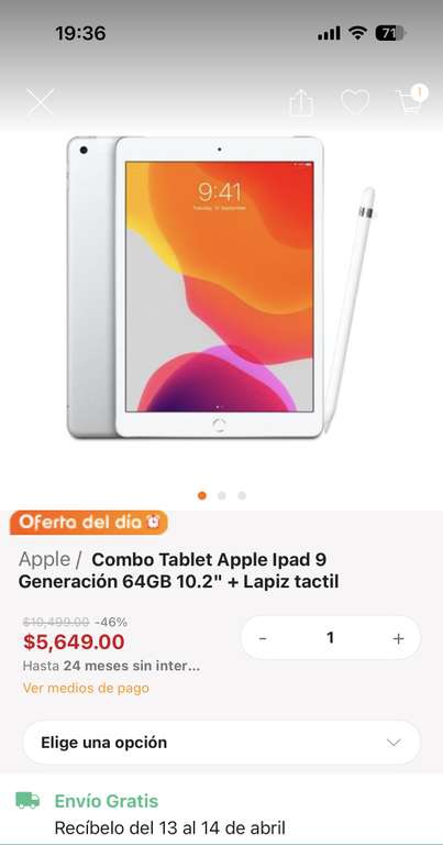Linio Ir a la ofertaCreo que es precio considerando que en la descripción menciona que el iPad es Nueva e incluye un lapiz compatible