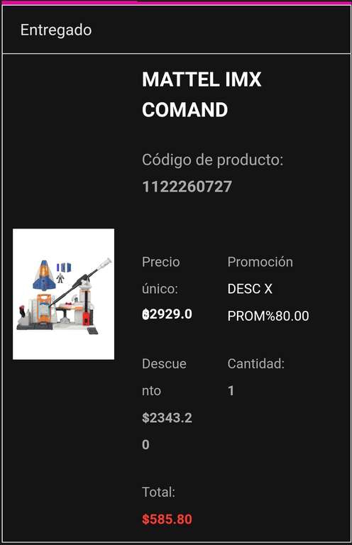 Imaginext de Buzz Lightyear plataforma de lanzamiento, precio de lista 2929, con 80% de descuento queda en 585.00, había 3 cajas en existencia, me llevé 1, quedan 2, espero alcancen.