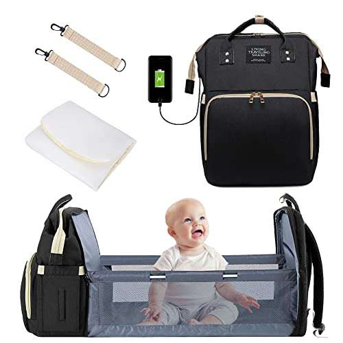 Amazon Ir a la ofertaMochilas Pañalera con Cuna, Bolsa Pañalera Moderna de Bebé de Gran Capacidad Convertible para Niños y Niñas, Bolsa de Cambio de Pañales Moisés Portátil, Mochila Plegable Multifuncional para Cama de Bebé