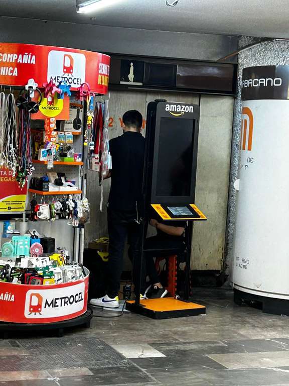 Hay un módulo de Amazon por el metro chabacano línea café, rumbo al transbordo a la línea azul