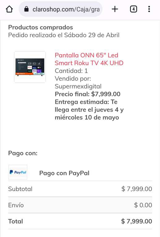 Claro Shop Ir a la oferta7999 menos promo de happy weekend (PayPal con 12 MSI con HSBC) $6400 despues bonificacion