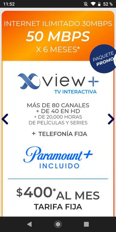 Paquete Triple Megacable 50 Mbps TV Tel y Paramount a $400 Tarifa Fija