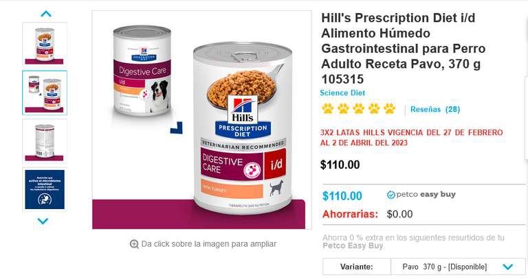 3x2 en todo el alimento húmedo de la marca Hill's, incluso si son dietas de prescripción veterinaria.