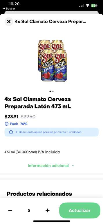 Rappi turbo 4 sol clamato cervezas 473 mL por $23.91