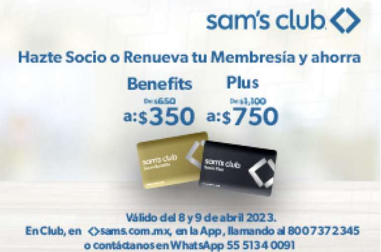 Sam's Club: Hazte socio o renueva tu membresía Benefits por $350 y Plus por $750