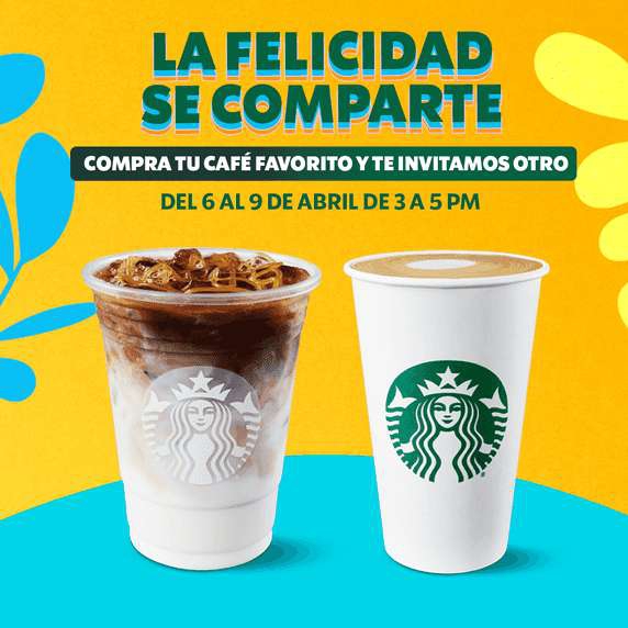 Starbucks Compre 1 bebida participante (Grande o Venti) y obtenga 1 gratis | 6-9 de abril 3-5 p.m.