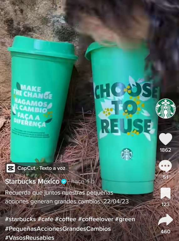 StarbucksDe acuerdo al tiktok oficial de Starbucks Mexico. El 22 de abril se estará regalando un reusable dependiendo el tipo de bebida: