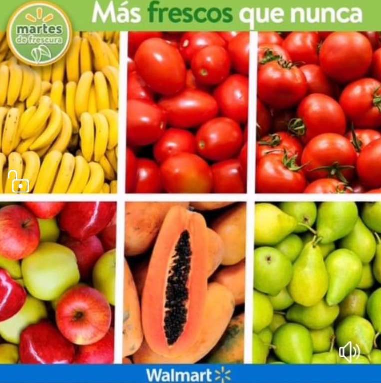 Walmart Frescura Martes 18 de Abril Banana Tomate Saladet Bola $11.90 kg Papaya $17.90 kg Manzanas Pera $29.90 kg