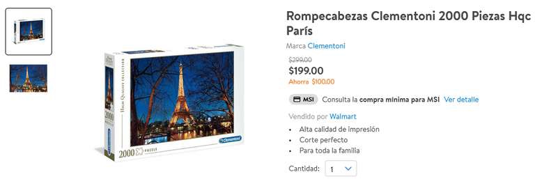 Walmart Puzzle 2000 piezas marca Clementoni (varios)
