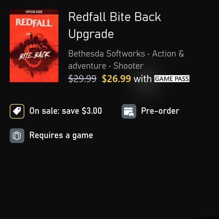 Xbox: Redfall Bite Back Upgrade - Descuento con Game Pass