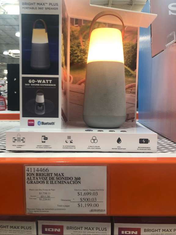 CostcoBright Max™️ es un sistema de sonido de alta potencia de 60 volts que es resistente al agua IPX5, por lo que es seguro dejarlo bajo la lluvia o cerca la piscina. Preparate para cualquier evento transmitiendo y controlando tu música de forma inalámbrica hasta 30 metros a través de cualquier Bluetooth®️-dispositivo habilitado. Gracias a nuestra innovación especial de experiencia de sonido de 360˚, Bright Max™️ tiene un sonido envolvente premium lo que te permite obtener un gran sonido donde quiera que estes,