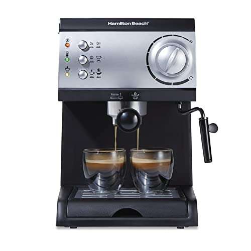 Amazon: Hamilton Beach 40715 Cafetera Espresso, 2 Tazas, Cappuccino, Mocha y Latte, 15 Bares, Negro y Plata
