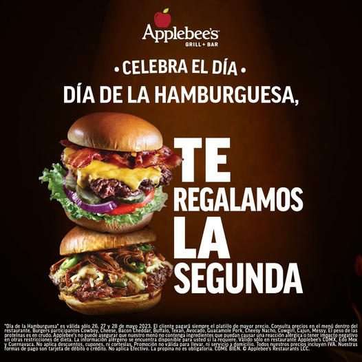 Applebee’s Día de la Hamburguesa: 2×1 en hamburguesas del 26 al 28 de mayo