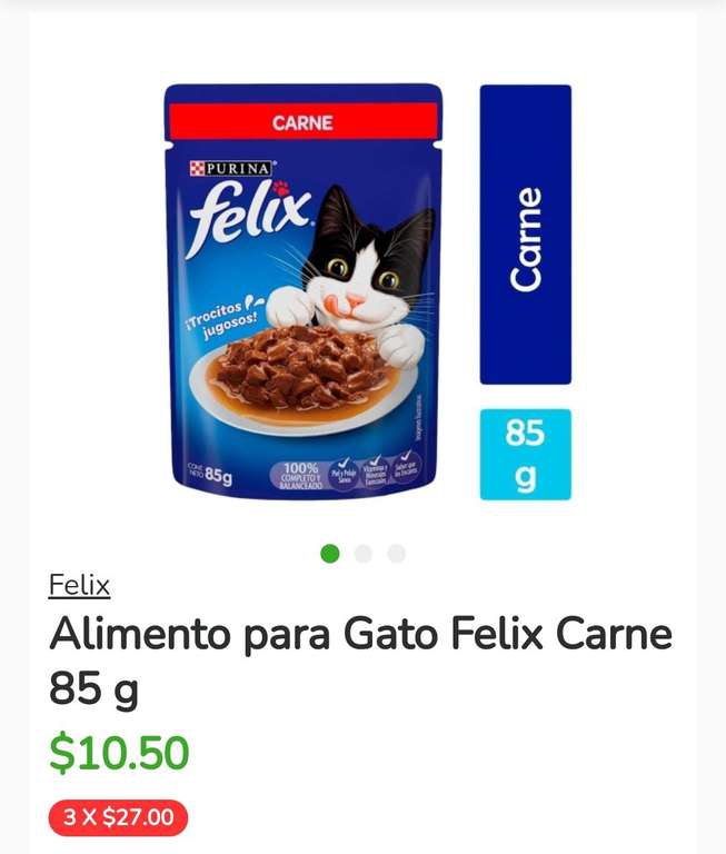 Para una correcta alimentación de tu amigo peludo Felix tiene para ti el alimento húmedo para gatos. - En trocitos jugosos - Mantiene saludable su pelaje y piel - Con vitaminas y minerales. Alimento 100% balanceado y completo en presentación de jugositos filetes, con un 80% de humedad, ideal para ayudar a mantener la hidratación de tu gato. Adicionados con omega 6, vitaminas y minerales. Con ácidos grasos esenciales que ayudan al sistema inmune. Mantiene un pelaje saludable.