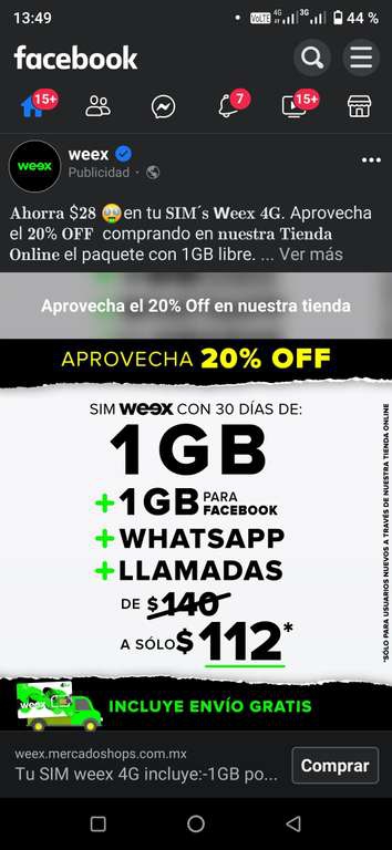 Weex Ir a la ofertaPublicidad del FB oficial. Gestionado por la Eshop de Mercado libre. Antes el chip con $300 costaba $220, ahora está en $180. Considero buena compañía para estudihambres y para los chavillos de secundaria, para darles WhatsApp y no Frifaier.