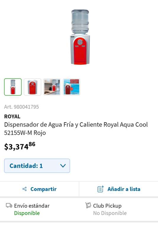 Dispensador de agua fría y caliente Sam's Club Royal Aqua Cool Red