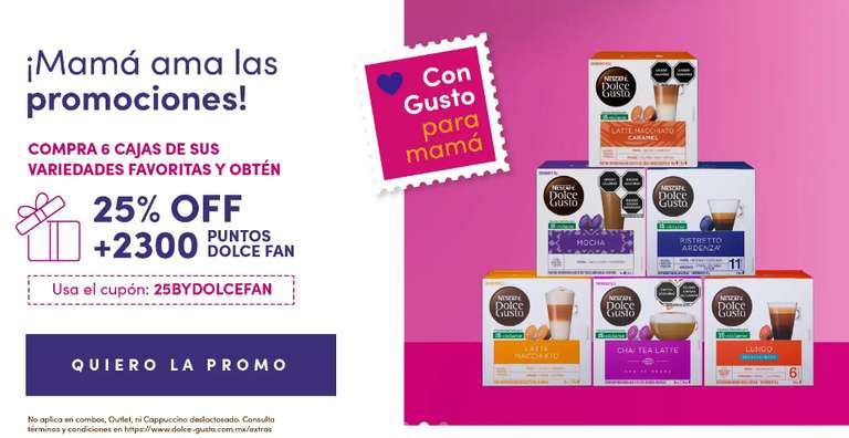 Dolce Gusto 25% DTO + 2300 puntos Dolce Fan comprando 6 cajas de 12 y/o 16 cápsulas