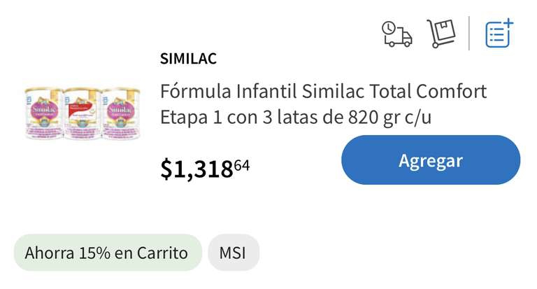 Sam's Club Ir a la ofertaBuscando leche de mi bebé me encontré este súper descuentos, añadiendo al carrito te da un descuento adicional de 15% quedando en total -,120.84 el paquete de 3 latas.